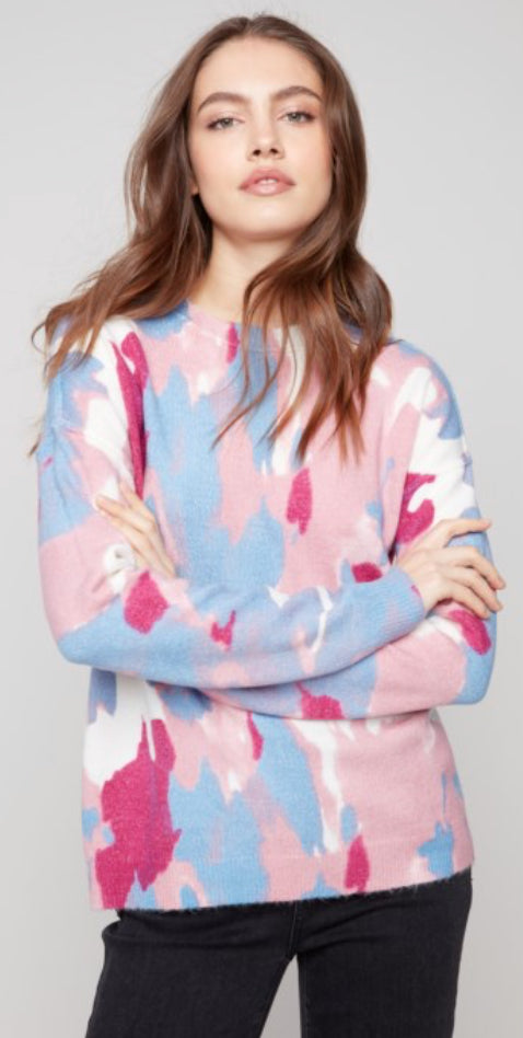 Charlie B pink/blue tie dye reversible soft sweater