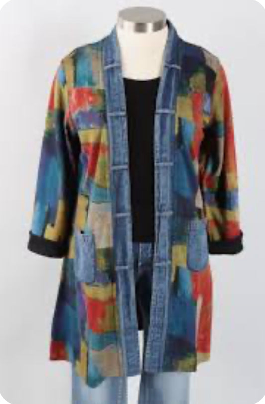 2nd RESTOCK! Reversible long knit cardigan with denim trim (see pic 2 for reverse)