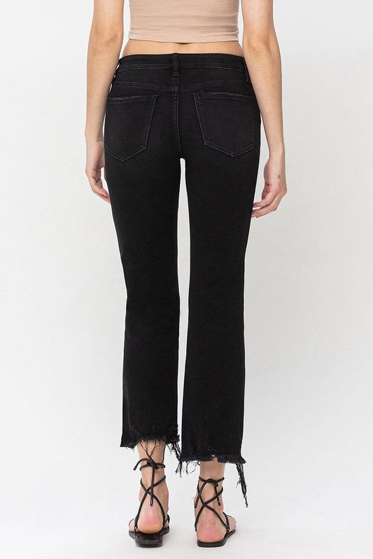 10TH RESTOCK! Black mid rise distressed bottom crop flare jeans with stretch BEST SELLER!
