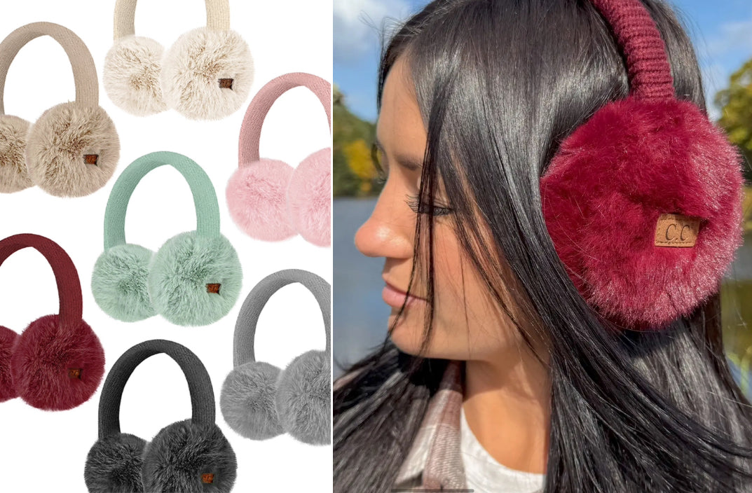 C.C Faux Mink Fur Knitted Earmuff Ear Warmer 100% Polyester One Size Adjustable Band