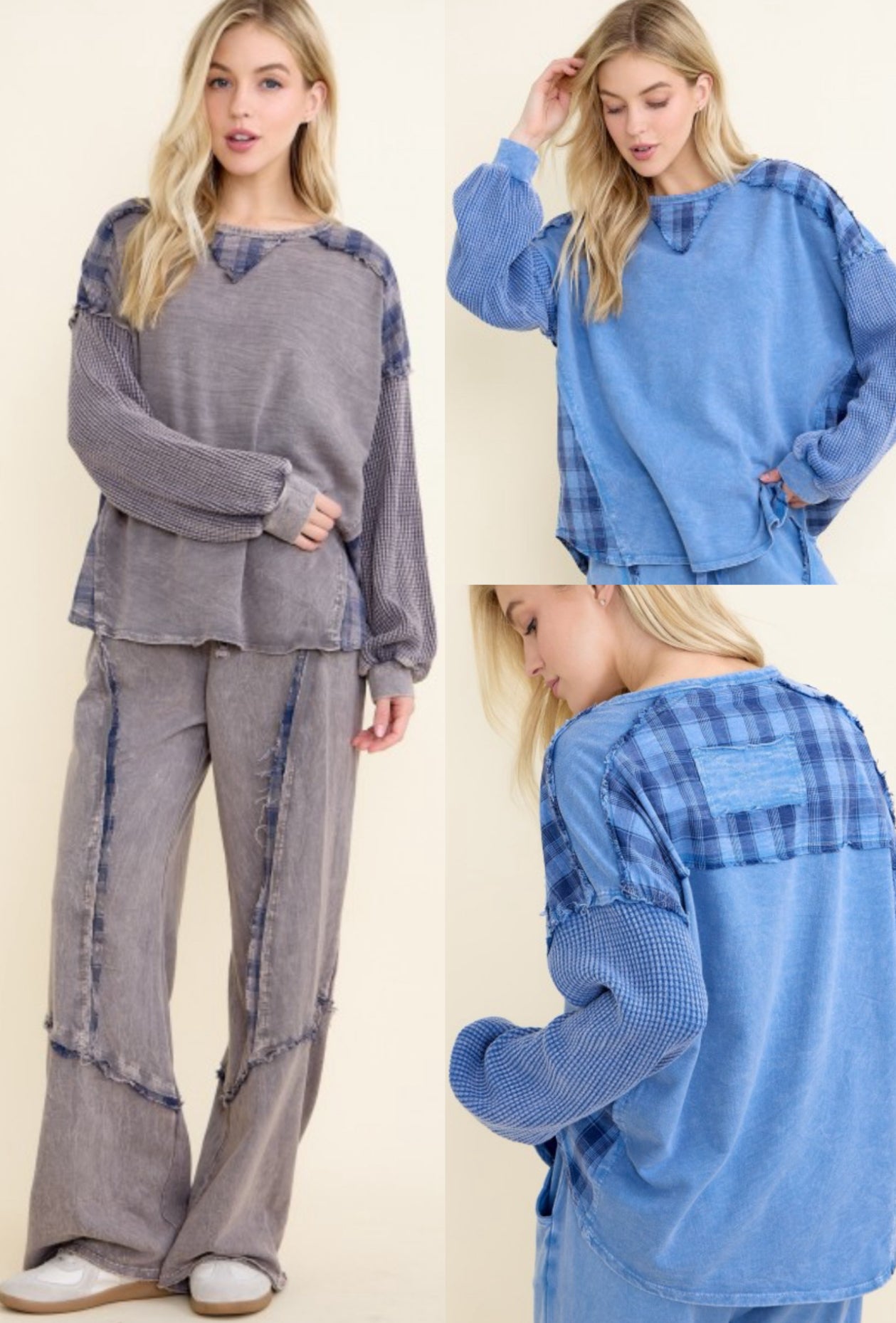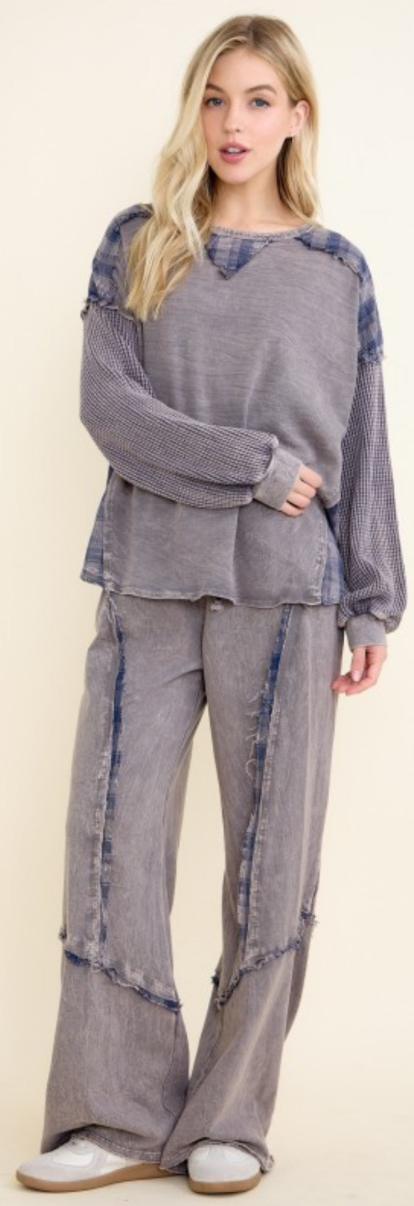 Plaid insert loose fit pants and sweatshirts (see pics for other colors)