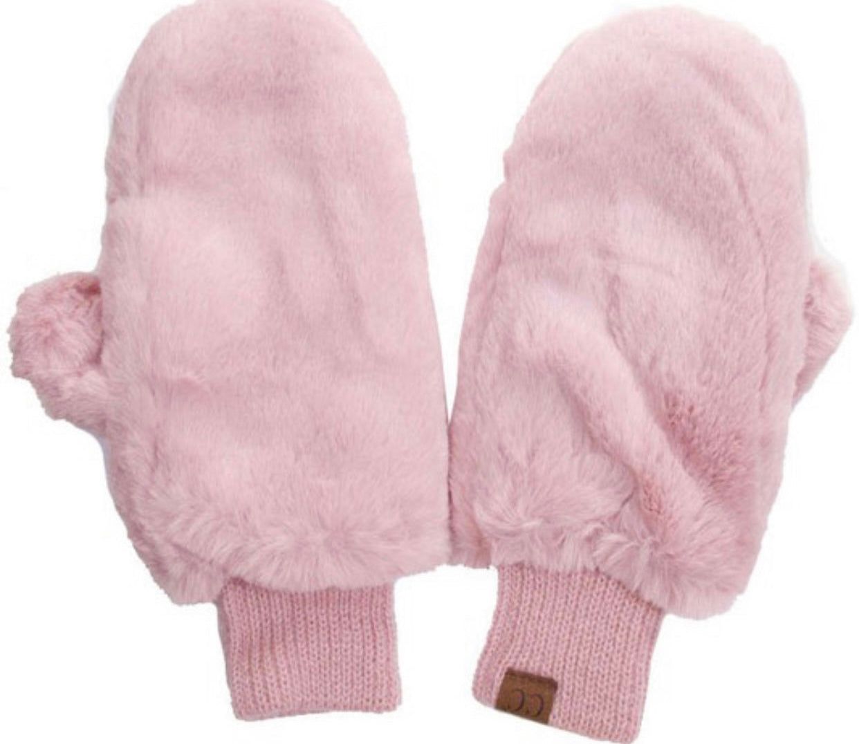 GREAT FOR GIFTS! CC super soft faux fur pop top mittens with soft sherpa lining