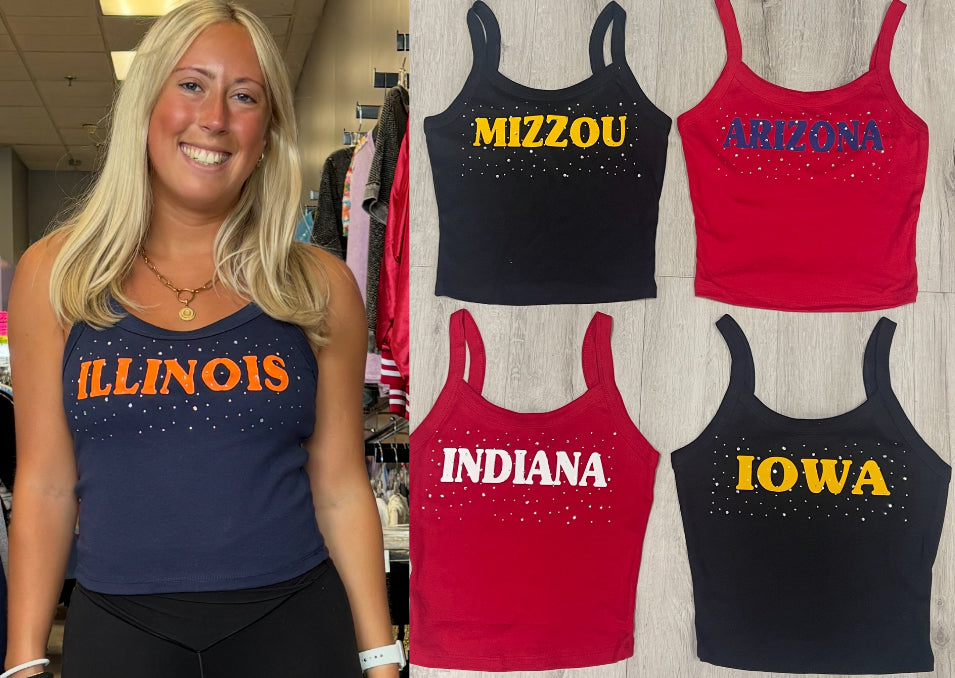 In order notes at checkout, please specify color of tank (white, black, red, heather grey, navy, light blue) and whatever you want it to say and what color for print