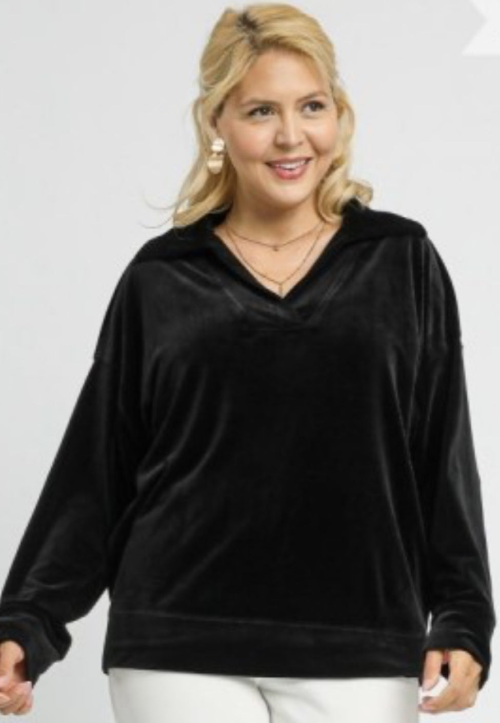 Plus size black velour polo